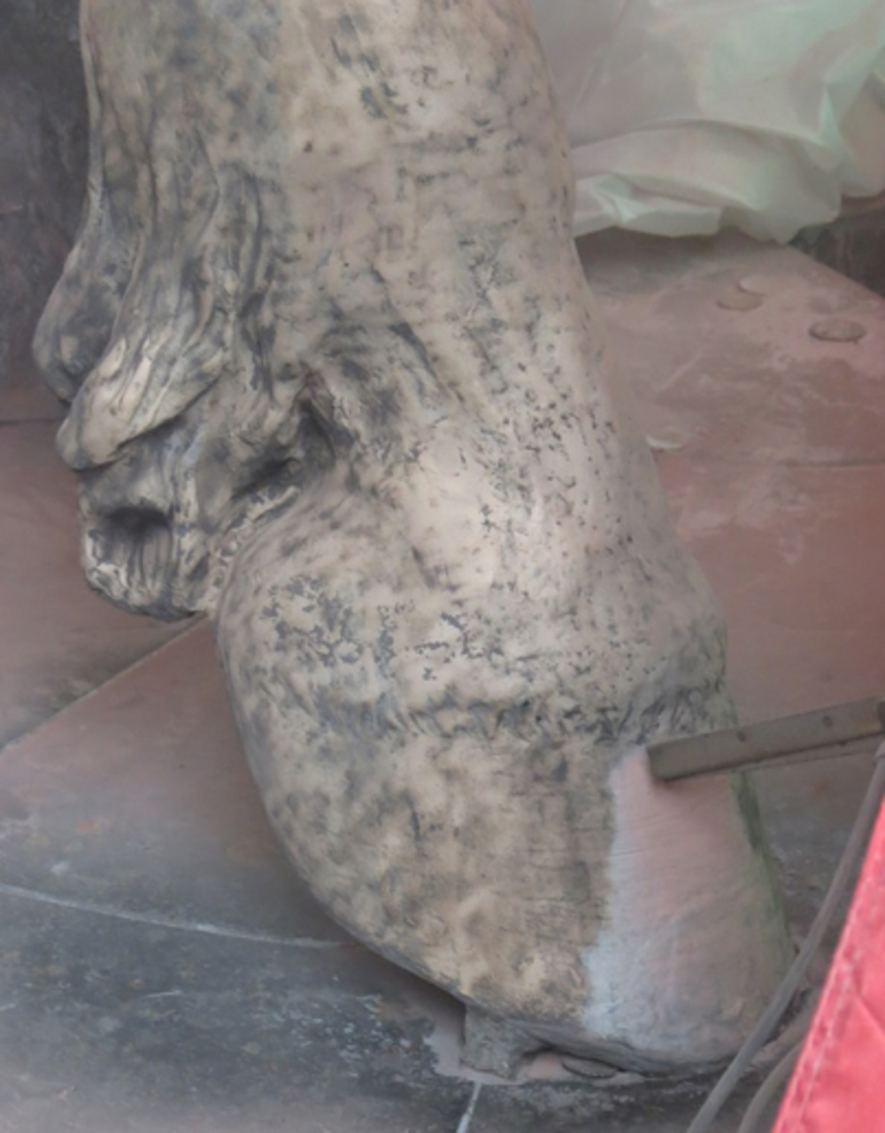 Working on leg four prior to completion of the work, allowing UK Bronze to add patination.